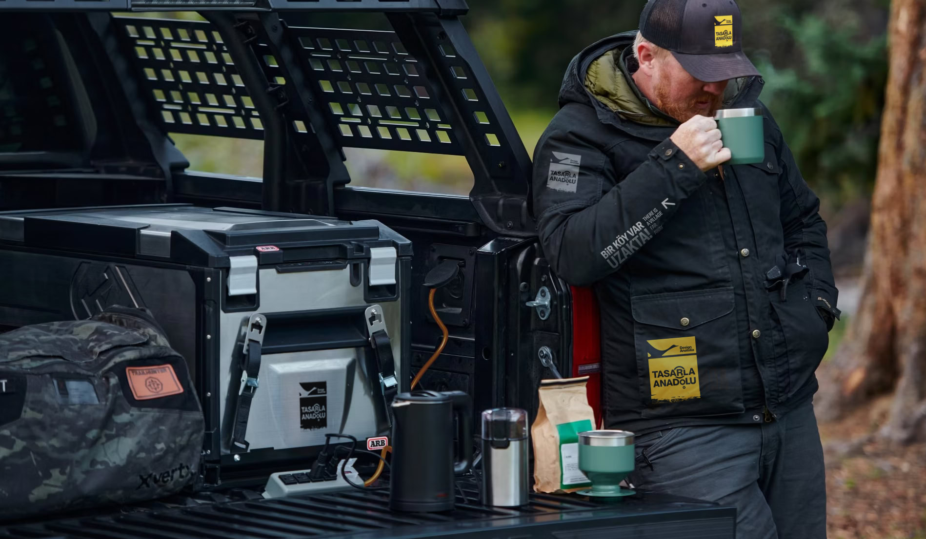 Araçta getirdiği kompakt tasarım ofisininin uygun bir alanda kurulumunu gerçekleştirir ve çekime başlanır.