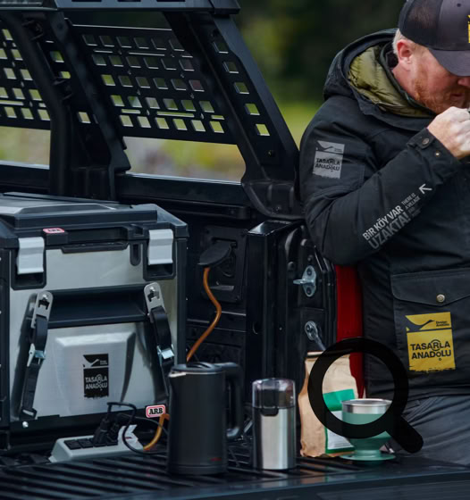 Araçta getirdiği kompakt tasarım ofisininin uygun bir alanda kurulumunu gerçekleştirir ve çekime başlanır.